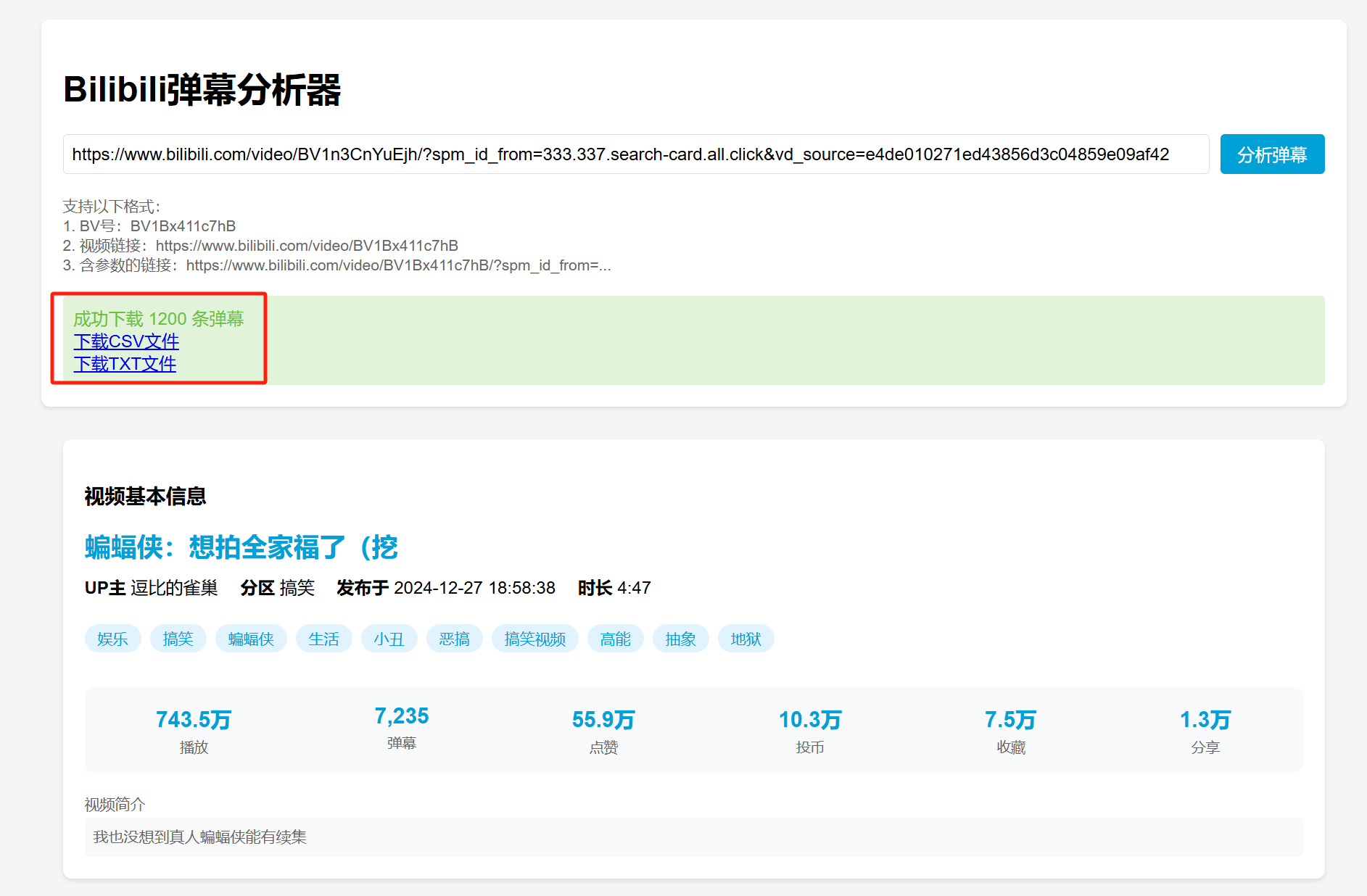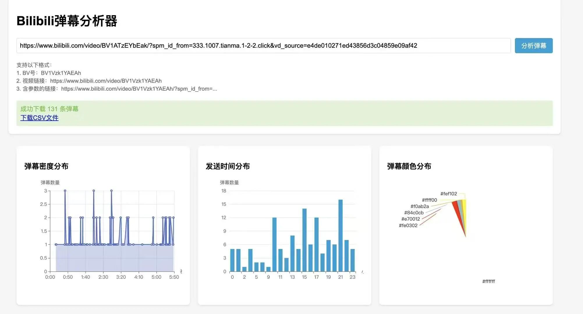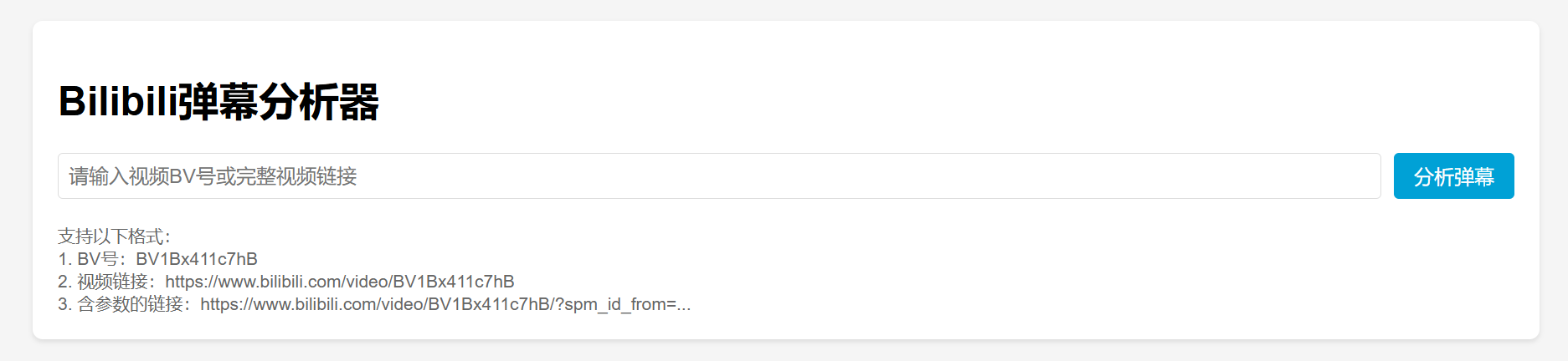 首先,初始界面,支持直接是BV号,视频链接和带参数的视频链接进行分析。