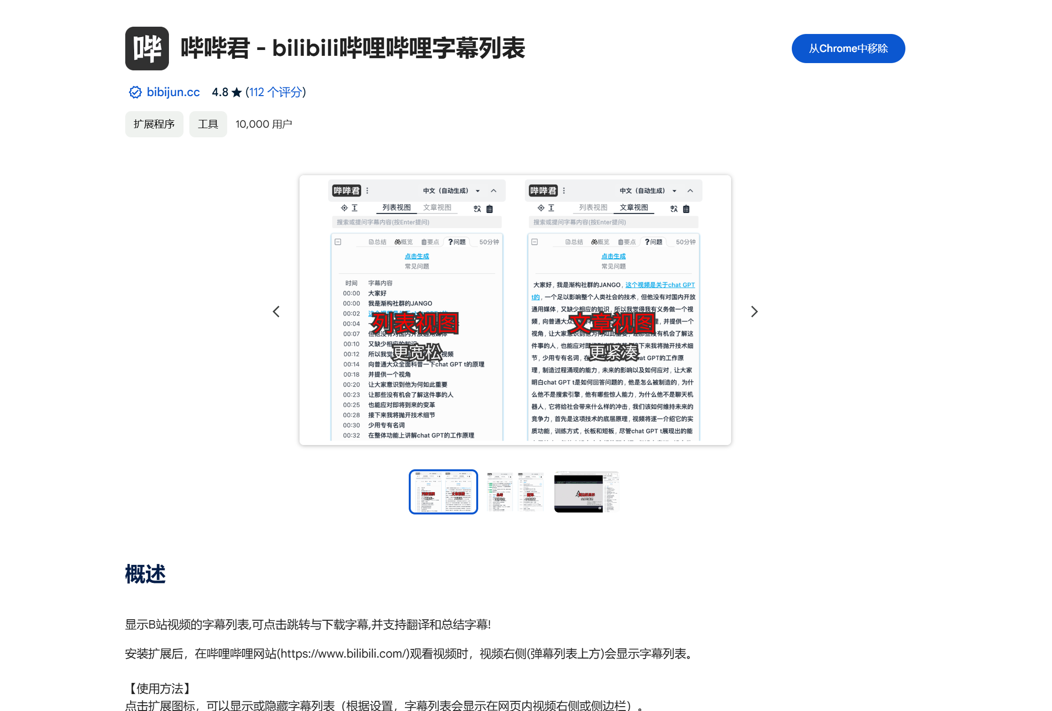 想要获取视频字幕,可以到Chrome商店搜索哔哔君这个浏览器插件。