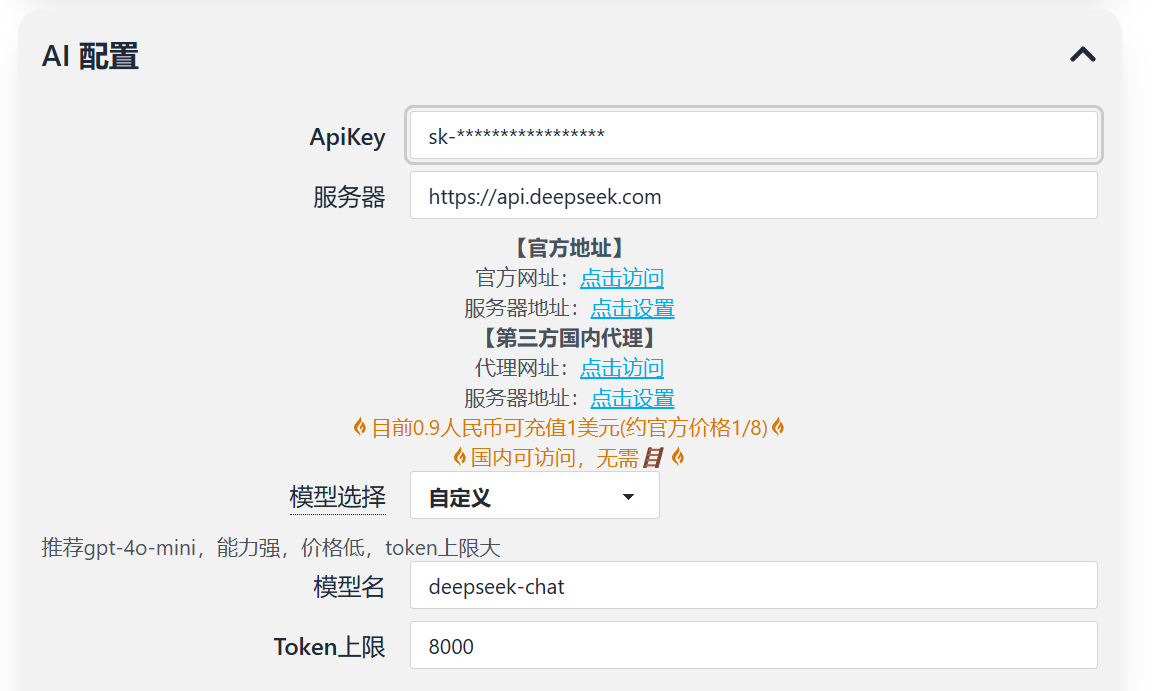 顺便一提,这个插件也是带有AI总结功能的,你也可以把DeepSeek的API用在这里。