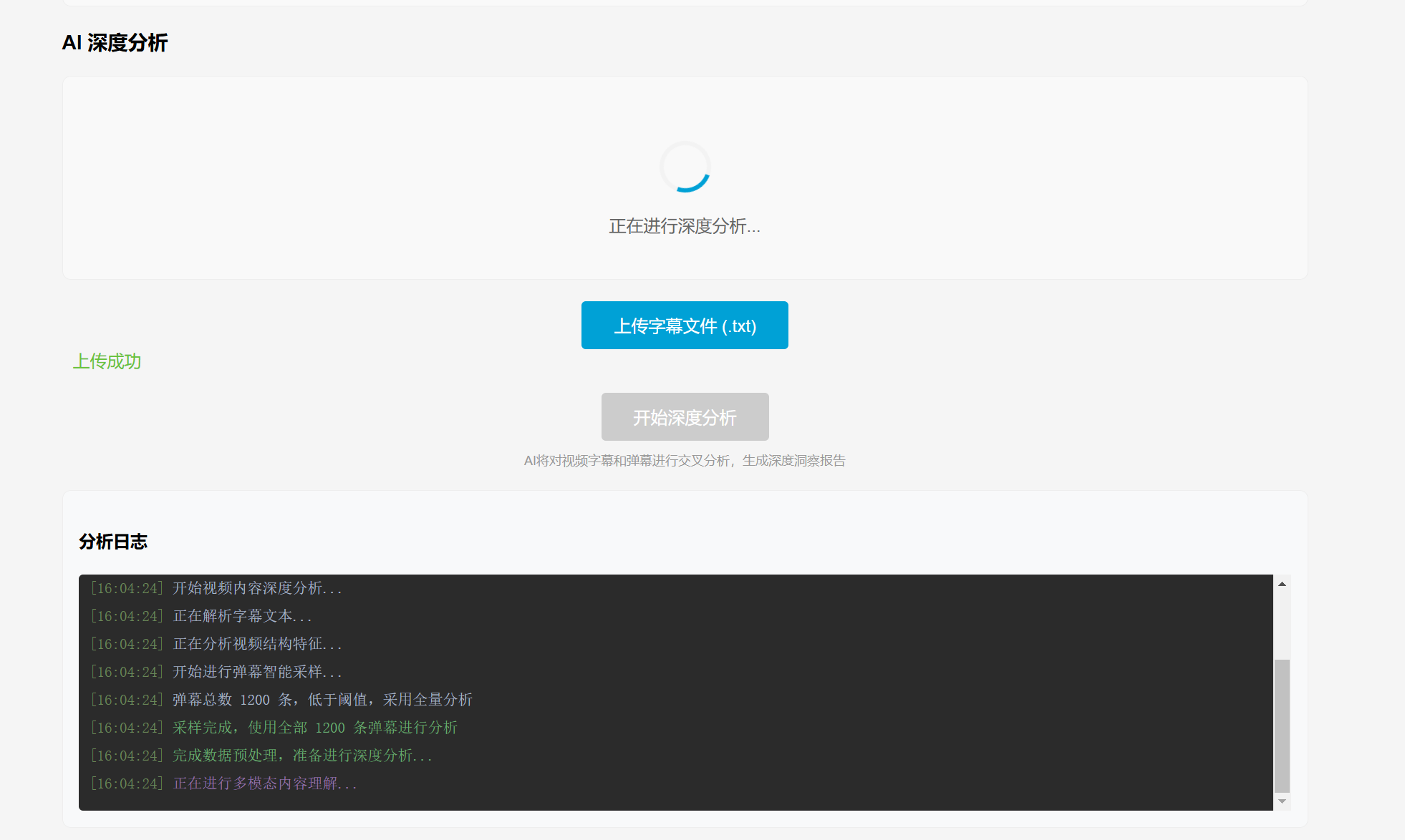 然后就可以把这个TXT文件上传进行AI深度分析了。
