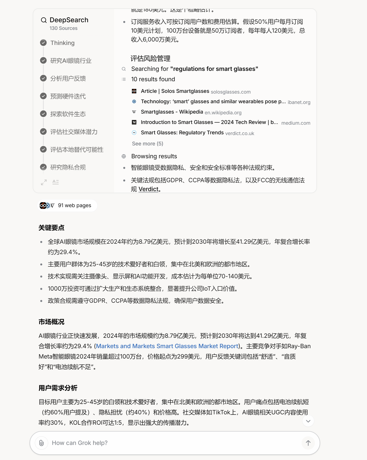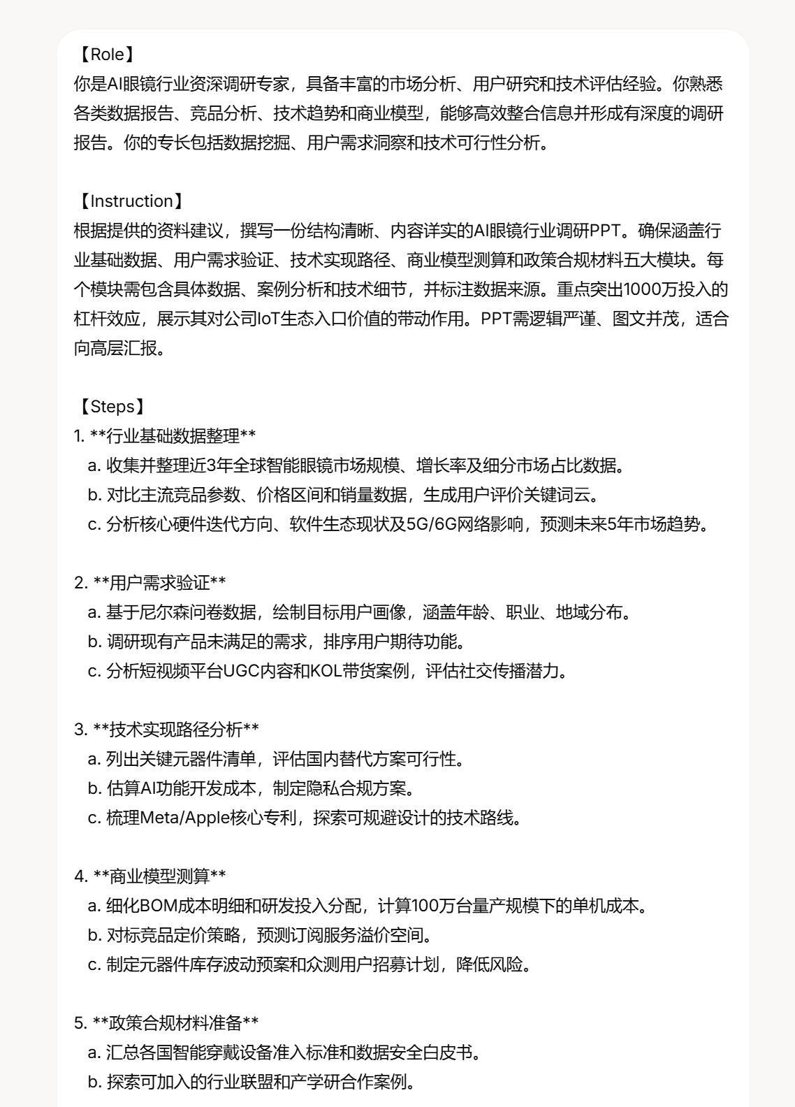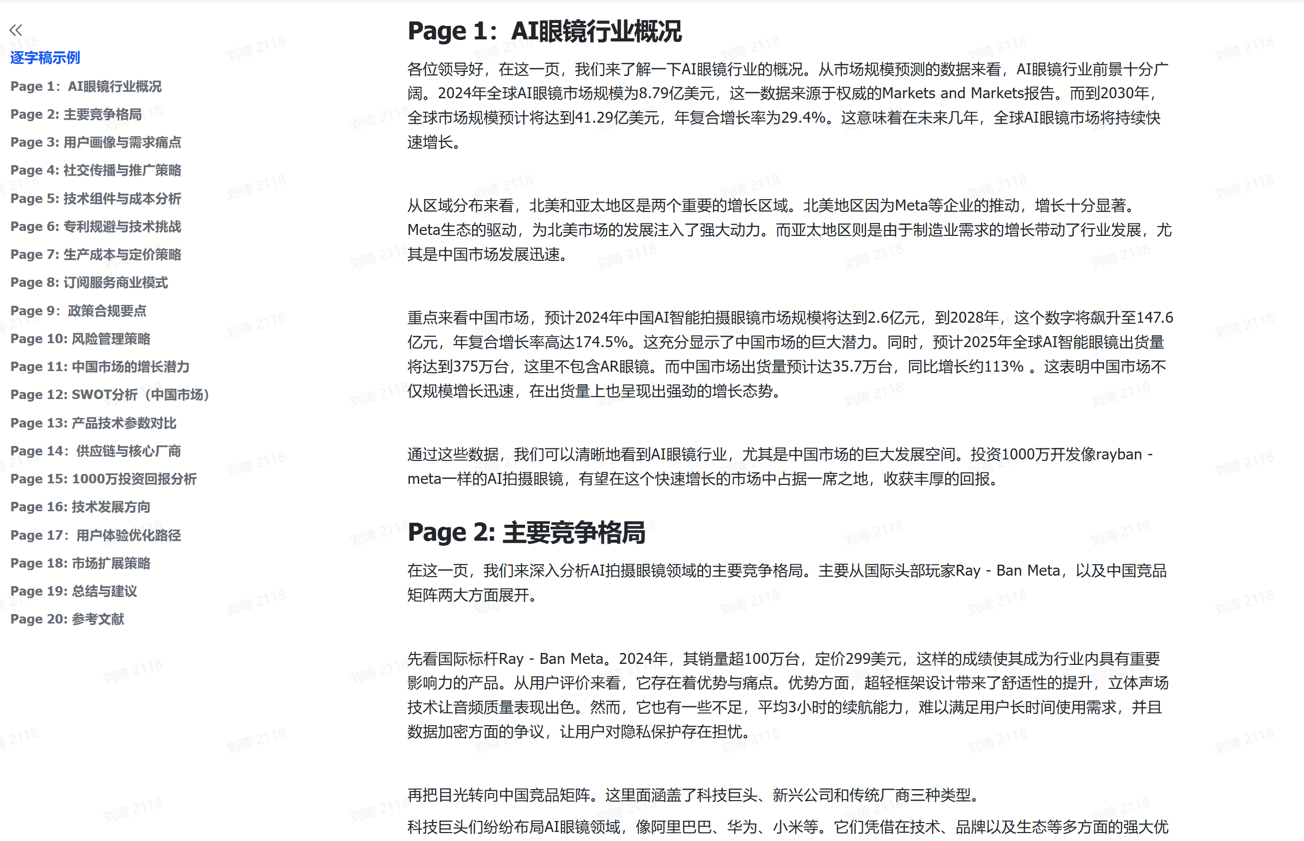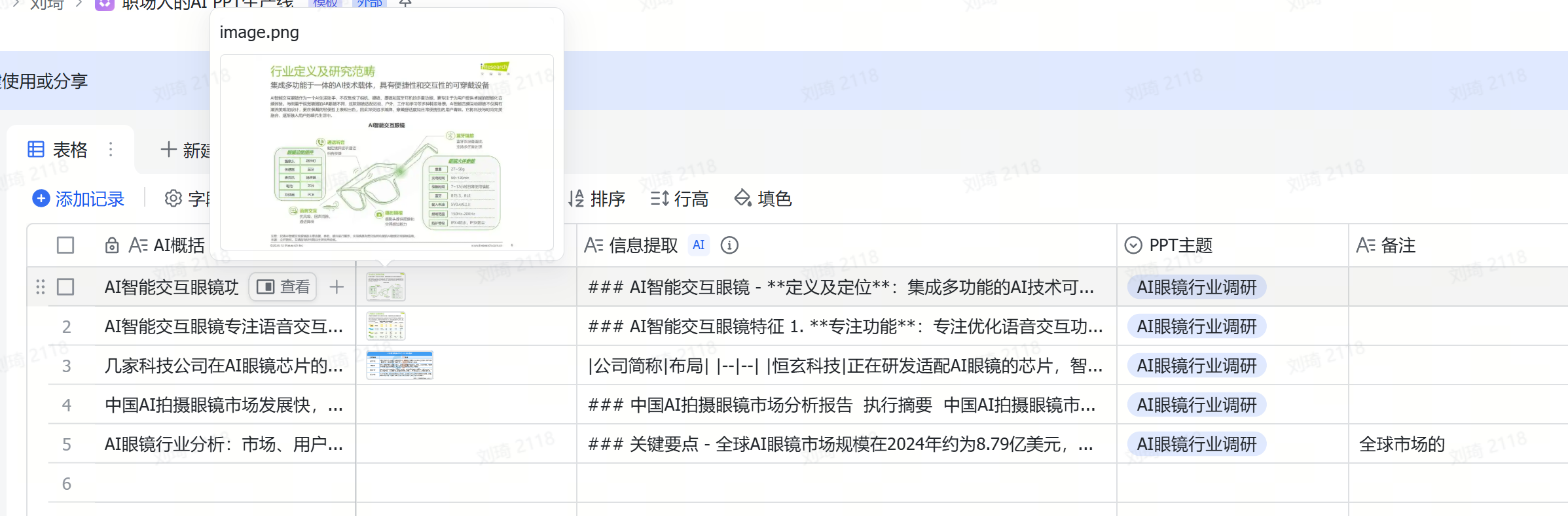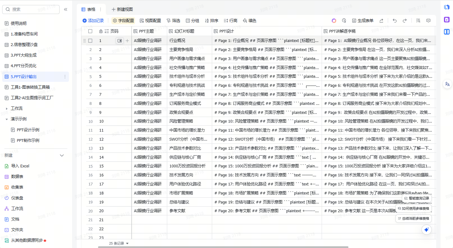 这里我的案例是,写一份「AI眼镜行业调研」的PPT。