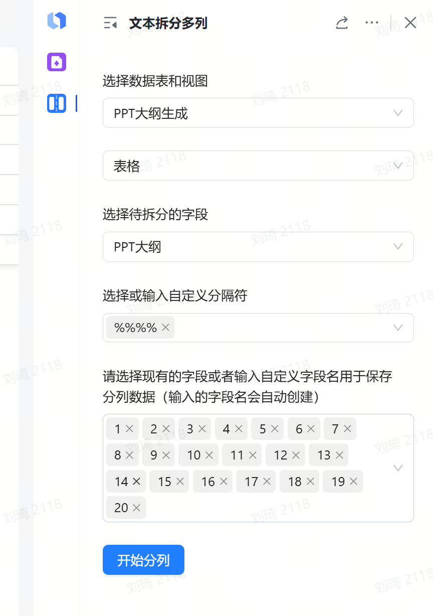 需要用到一个多维表格插件,叫做「文本拆分多列」。