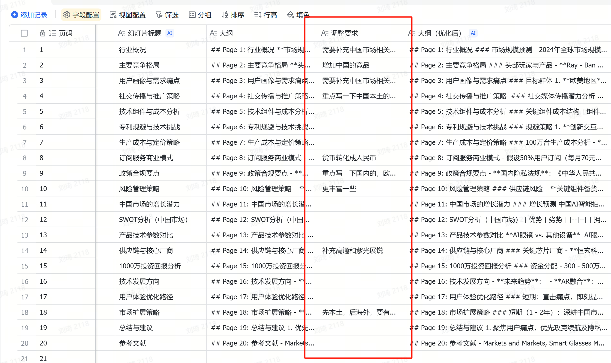 还记得上面皮的那一下吗?把面向中国市场的调研Prompt重写成了全球市场。到这一步,就让大纲受到了干扰,国内市场的体现严重不足。