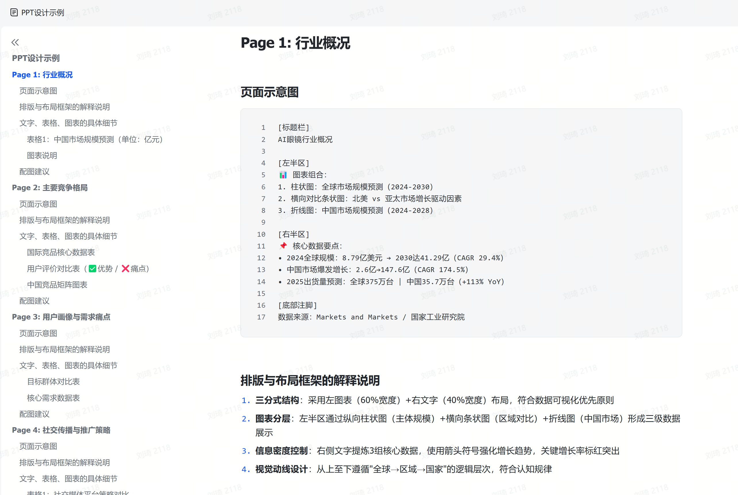 我按照它给的建议做了前5页作为示意,虽不见得多好,但它能传递出的信息量,我认为相比一键生成的PPT,要可用多了。