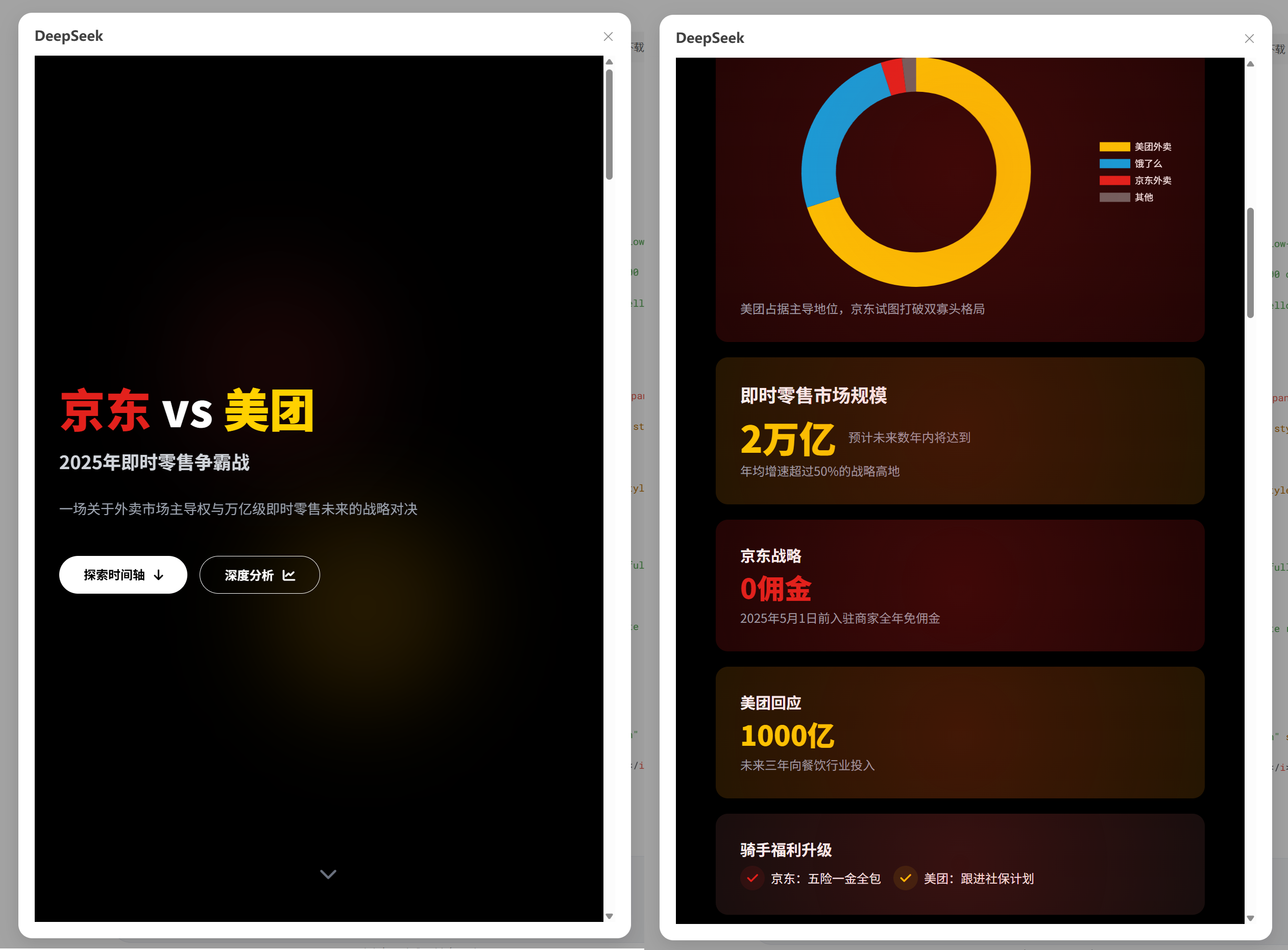 把上面的提示词连同你得到的调研报告一起,发送给一个编码能力比较强的AI,静待结果即可。