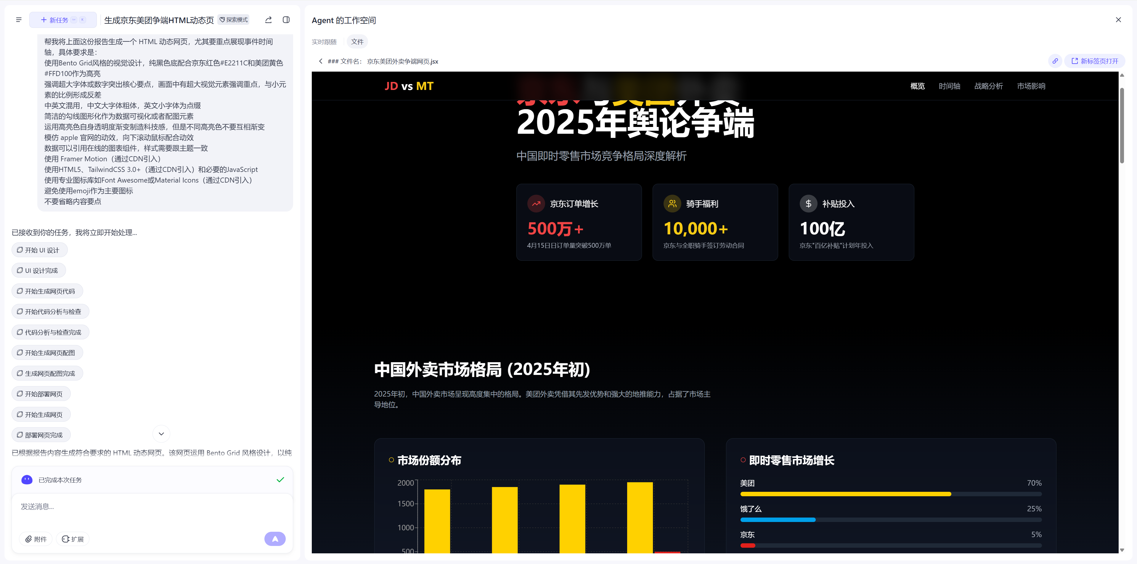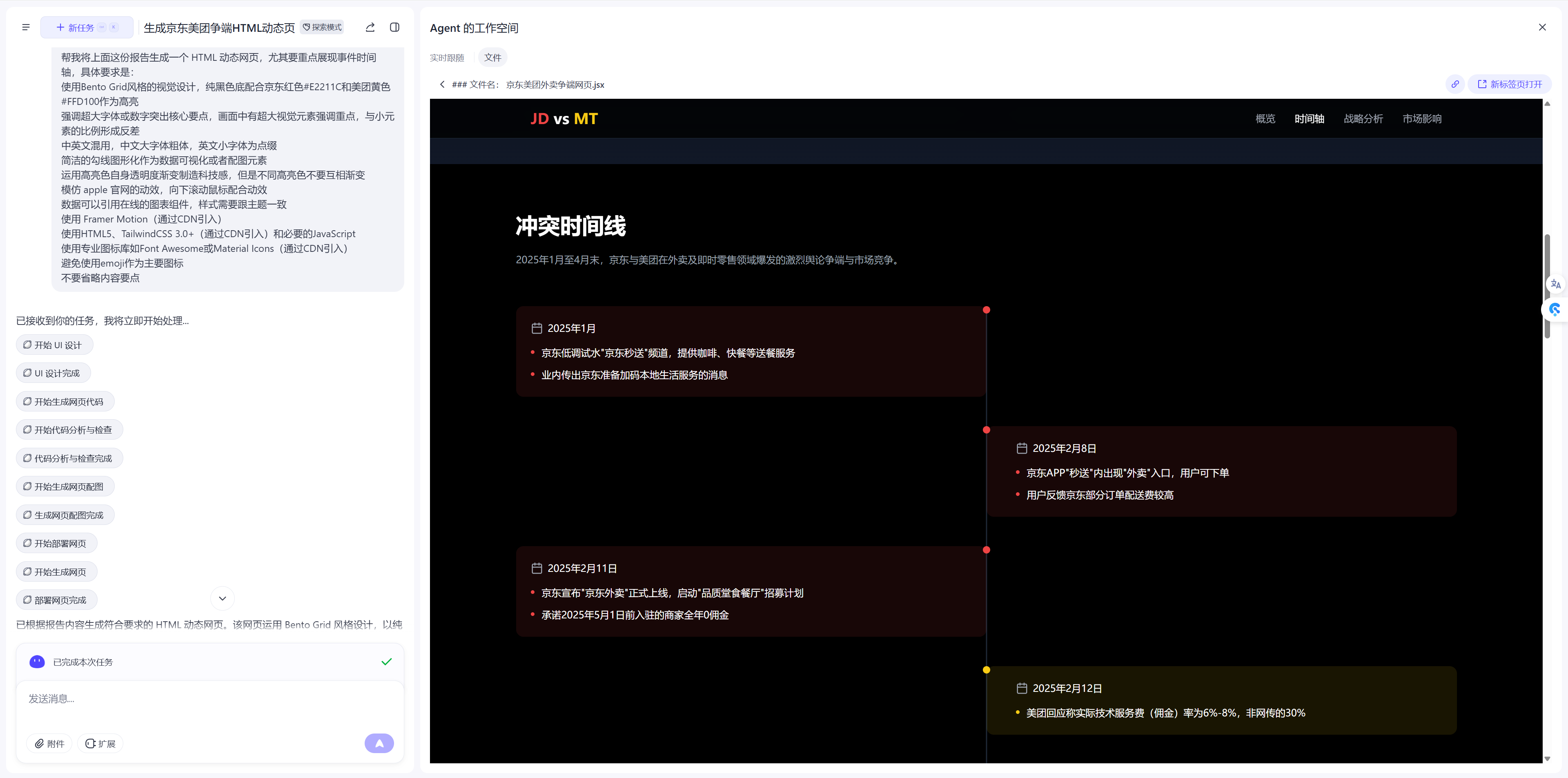 扣子空间的页面设计也算过得去,但模型的分析理解能力或者长文本的支持上可能稍弱一筹,会出现幻觉数据,需要更多的人工调整: