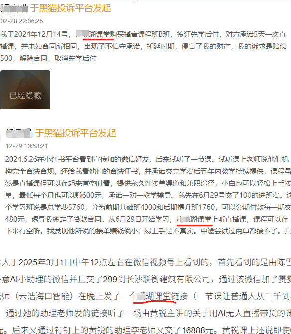 GPT根据相关上课链接,发现了来自多个维权投诉平台的案例: