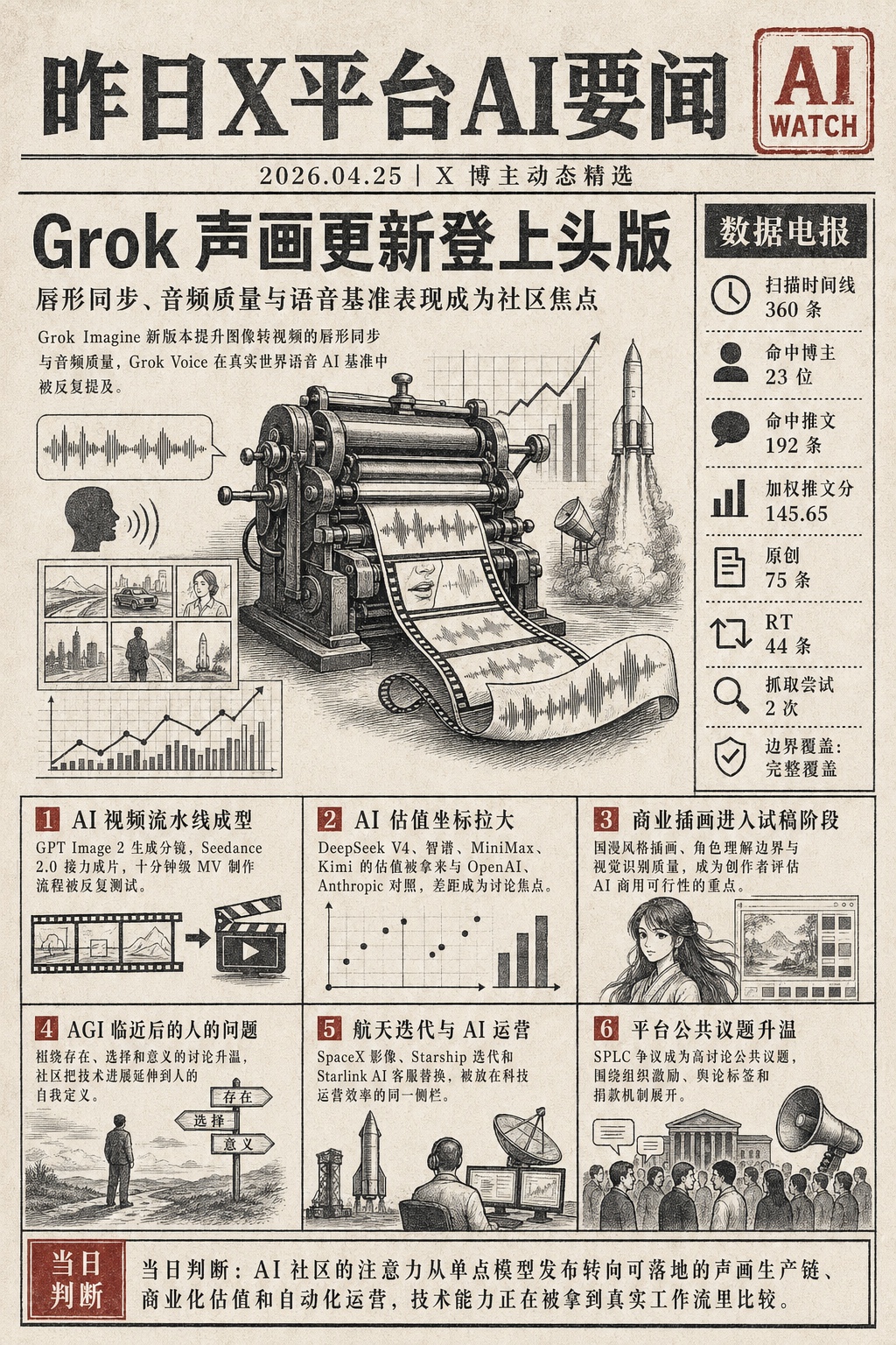 X 平台 4月25日 AI 简讯|Grok Imagine 升级唇形同步,AI 视频生成工作流简化,DeepSeek 估值引关注